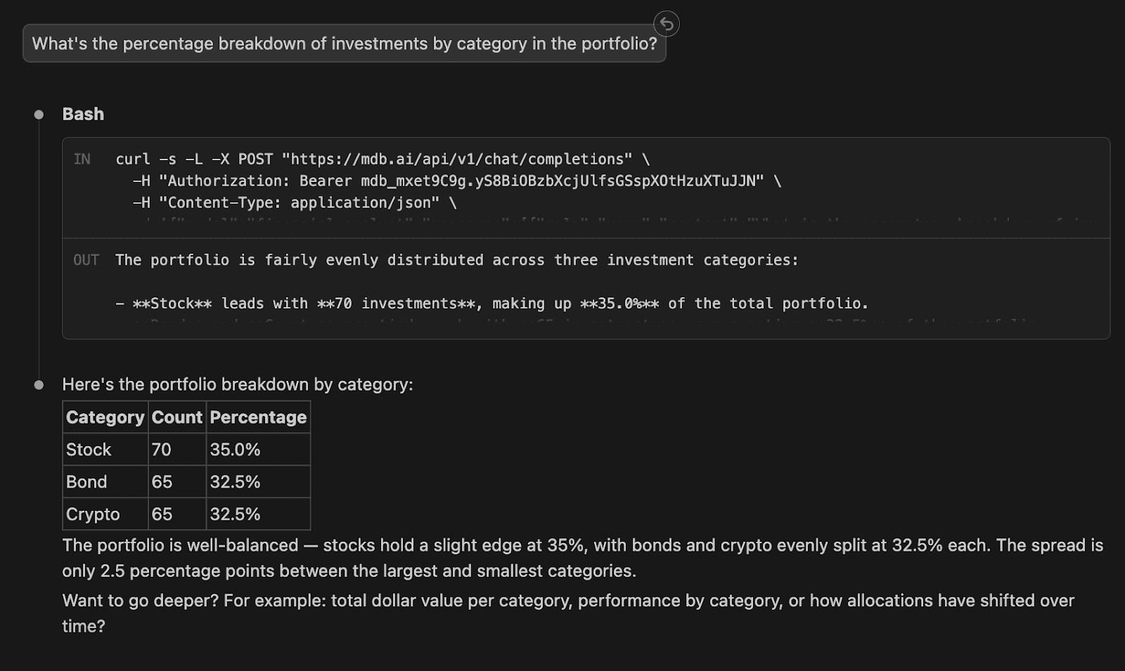 This creates a workflow that feels less like querying a database and more like working with a data analyst who understands your systems.