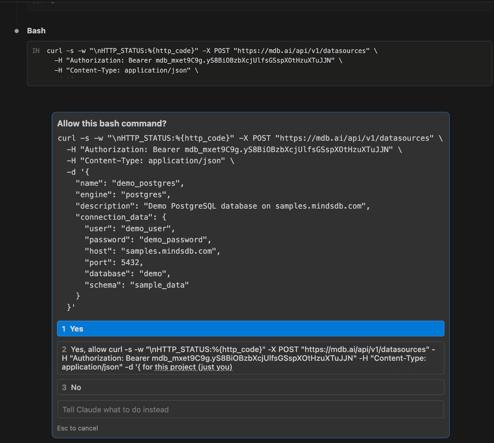 It will ask you to allow this command, select yes: