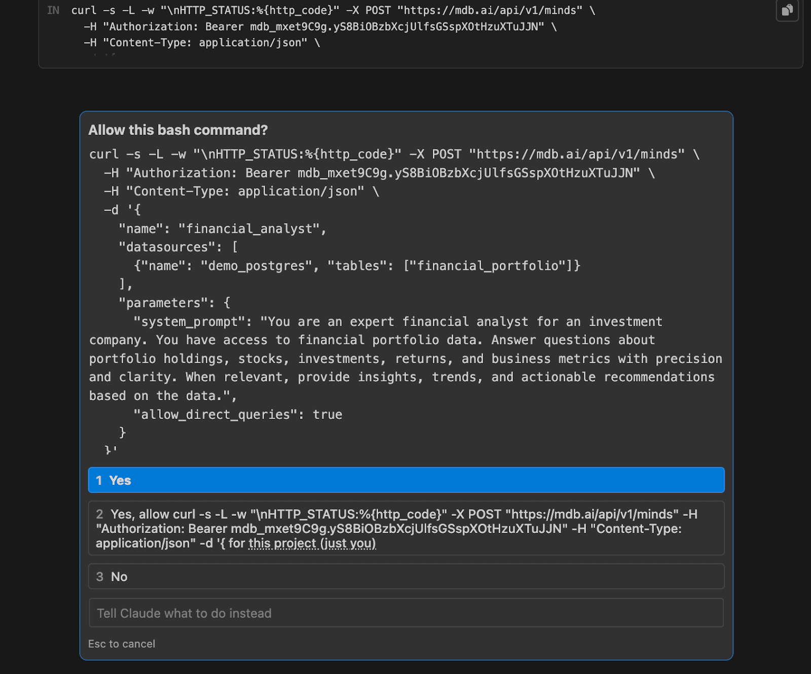 You will get prompted the below where you have to select ‘Yes’. You will see that a system prompt has been generated to instruct the Mind.